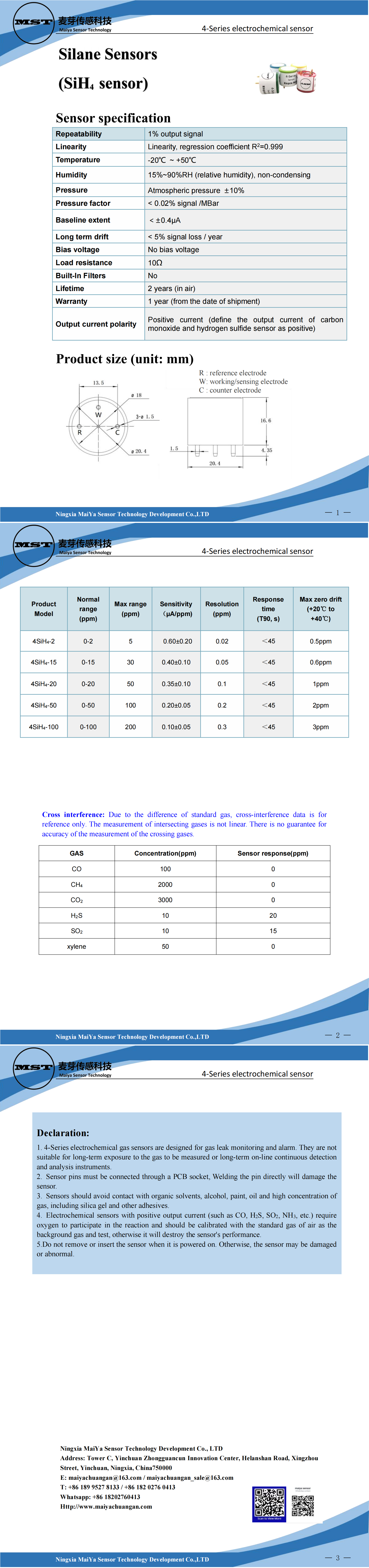 Silane Sensors (SiH? sensor)4-Series electrochemical sensor