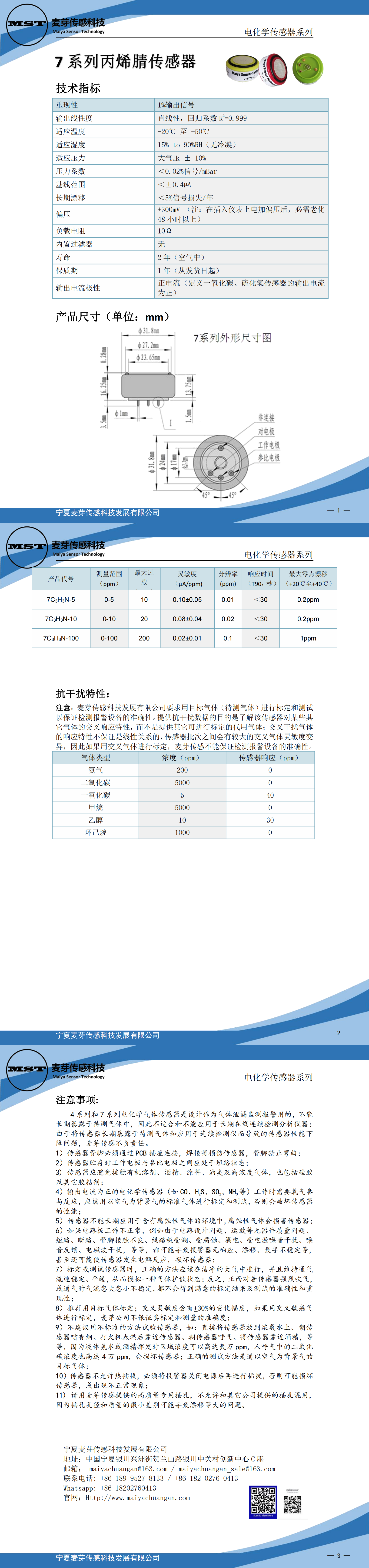 MST 7系列丙烯腈?zhèn)鞲衅?C2H6O4S