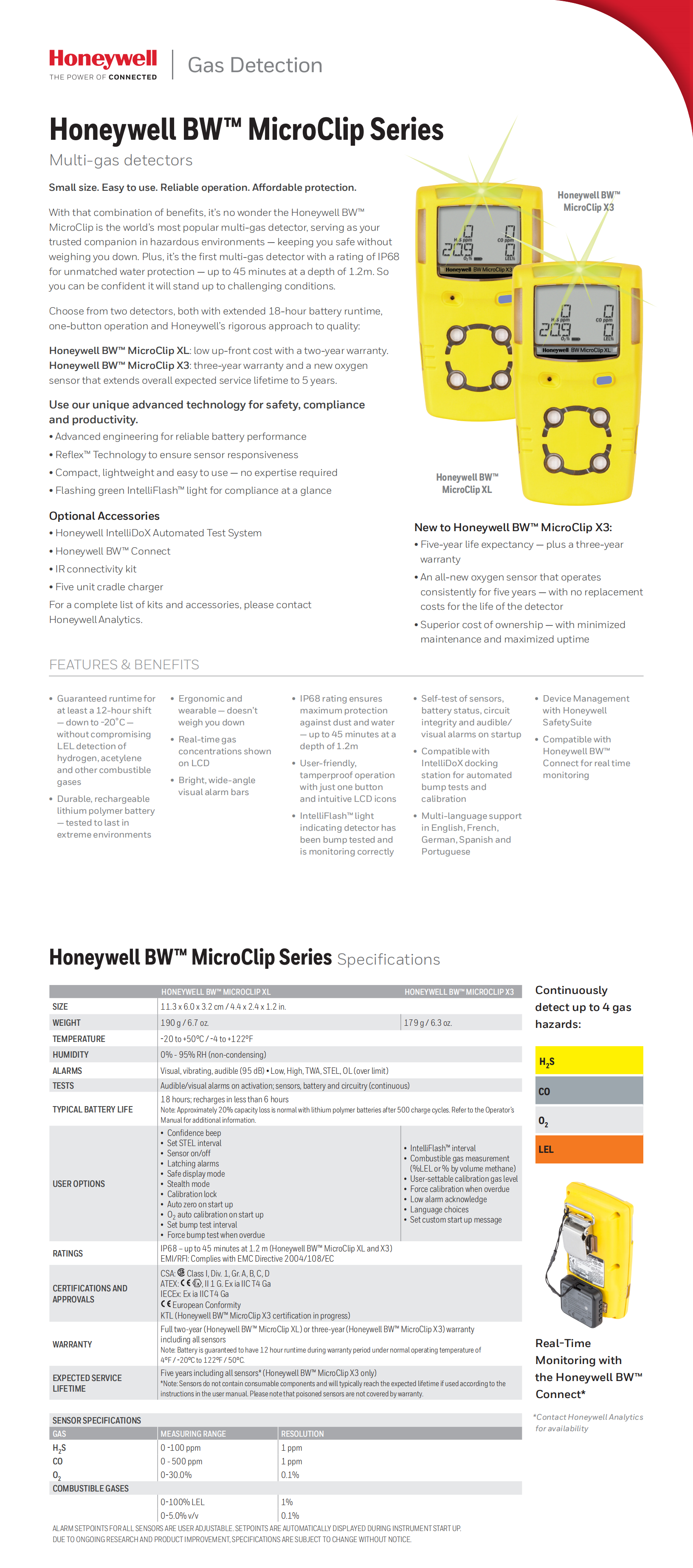 Honeywell BW? MicroClip Series 易于攜帶、輕薄小巧,可提供經(jīng)濟劃算的有毒氣體保護。對于標準操作,盡可放心選擇 Honeywell BW? MicroClip XT。如需更大容量電池,尤其是在寒冷天氣下工作時,請選擇 Honeywell BW? MicroClip XL。 一鍵式操作,極其易用,可顯著縮短培訓時間。Honeywell BW? MicroClip Series 可與 BW 的 MicroDock II 自動測試和校準系統(tǒng)以及 Fleet Manager II 桌面軟件完全兼容。