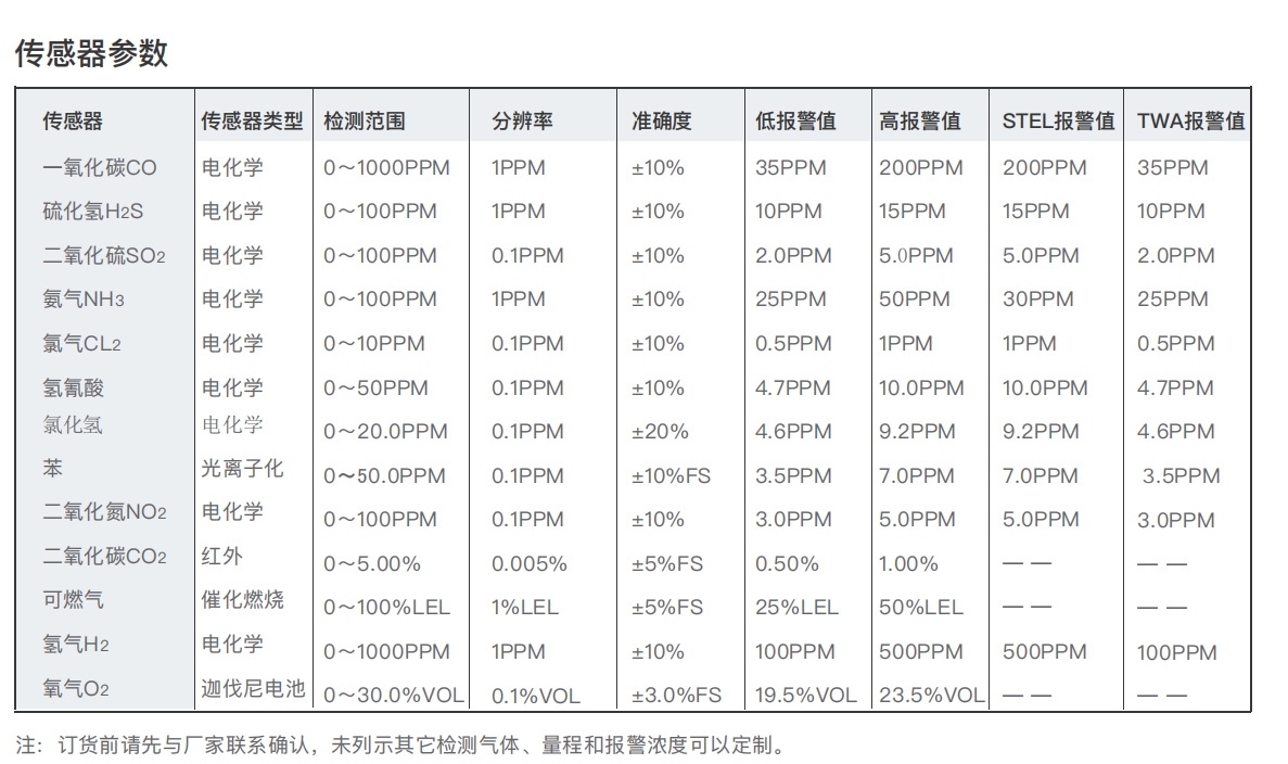 傳感器 :電化學(xué)式、催化燃燒式、紅外、光離子化或迦伐尼電池