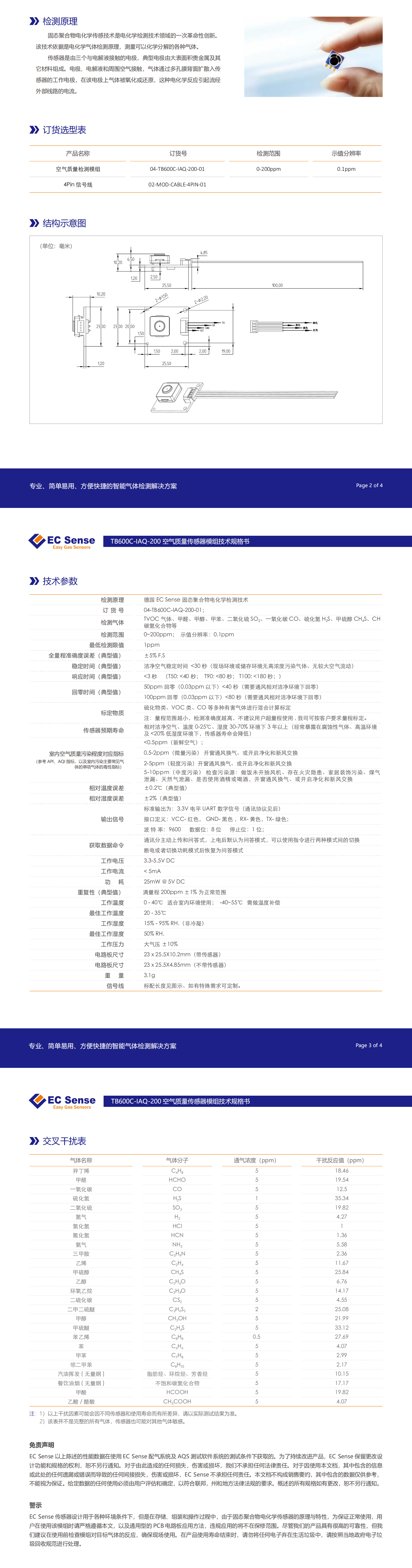 EC Sense TB600C-IAQ-200 空氣質(zhì)量傳感器模組