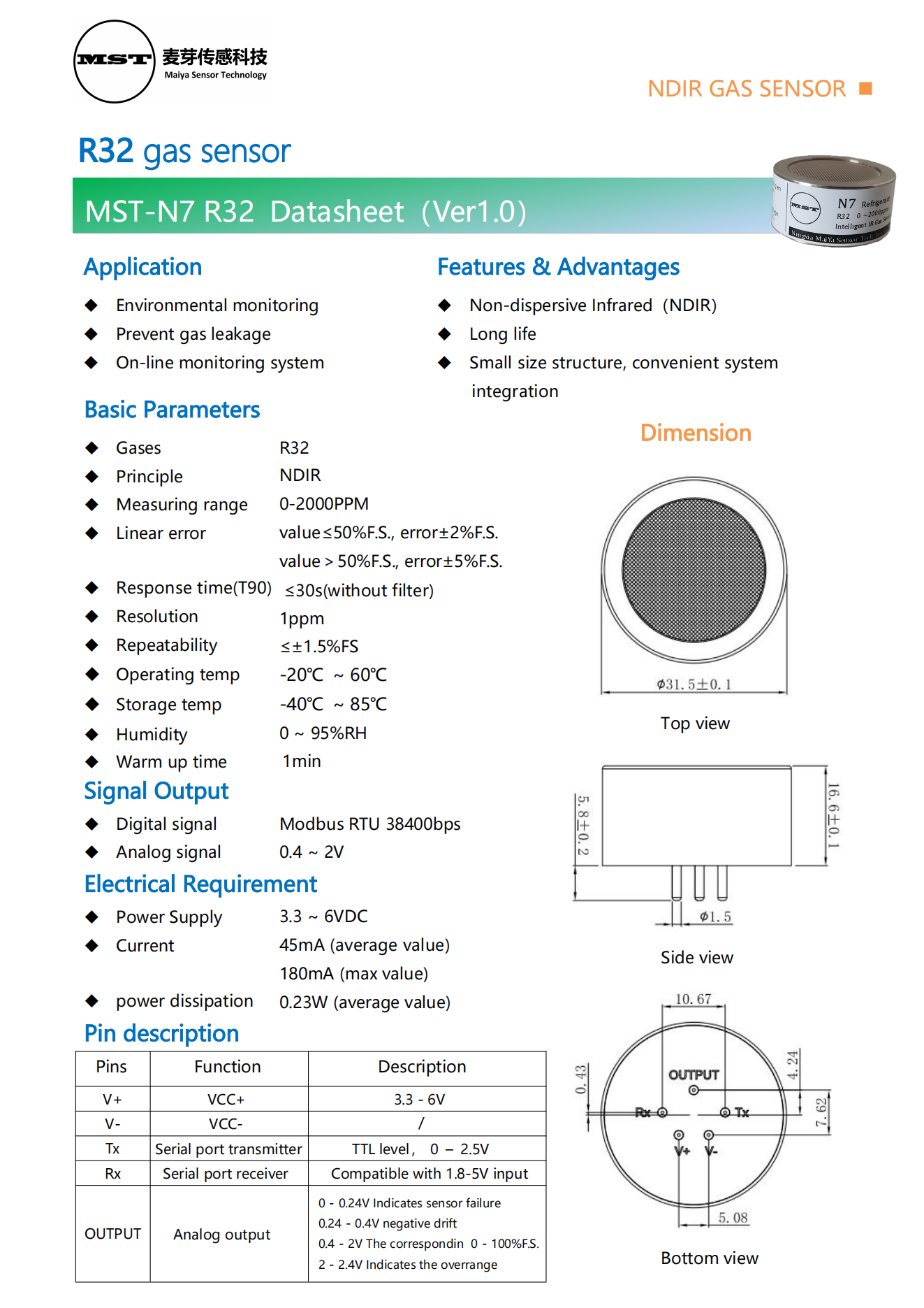 Features & Advantages Non-dispersive Infrared(NDIR) Long life Small size structure, convenient system integration
