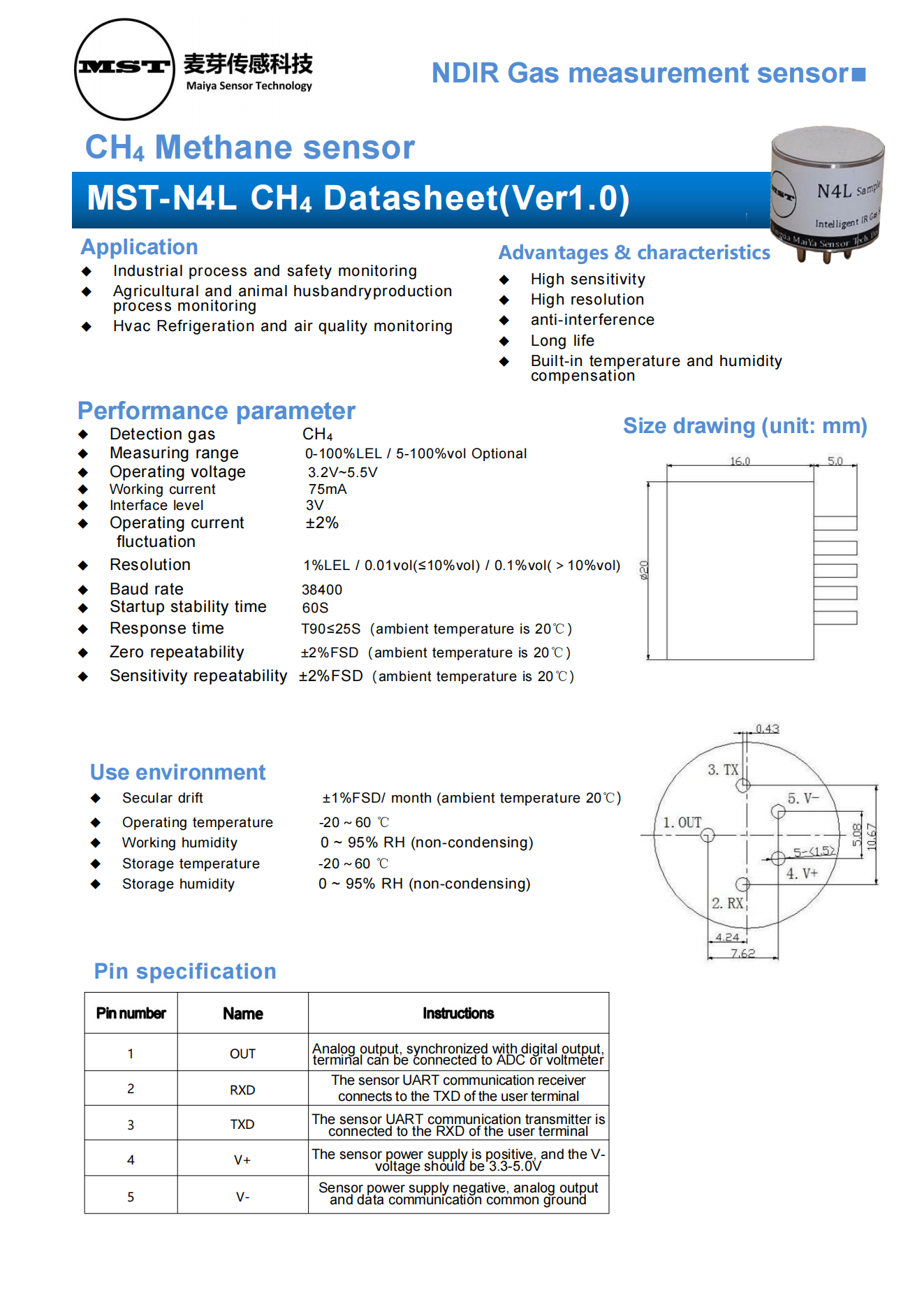 Advantages & characteristics High sensitivity High resolution anti-interference Long life Built-in temperature and humidity compensation