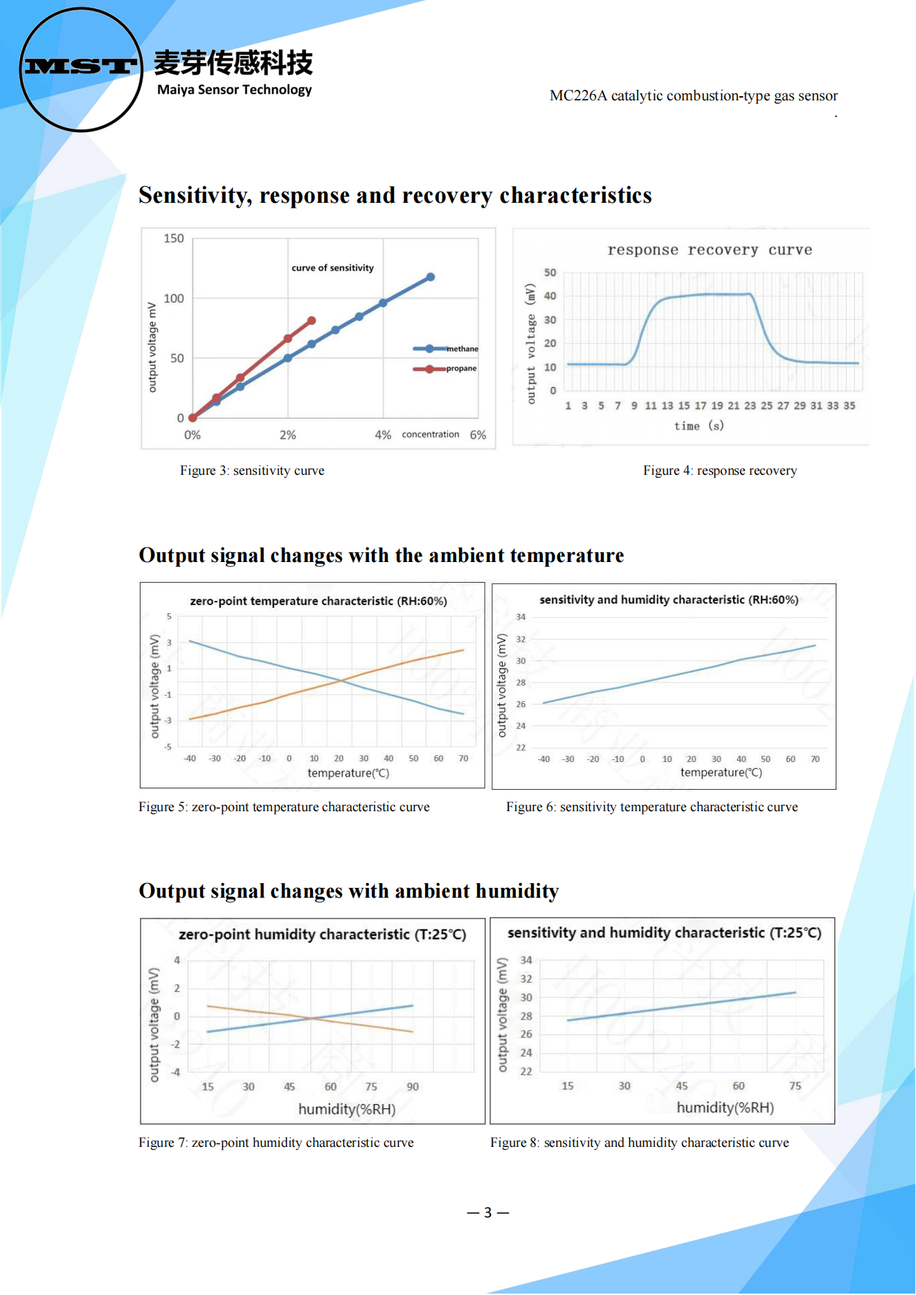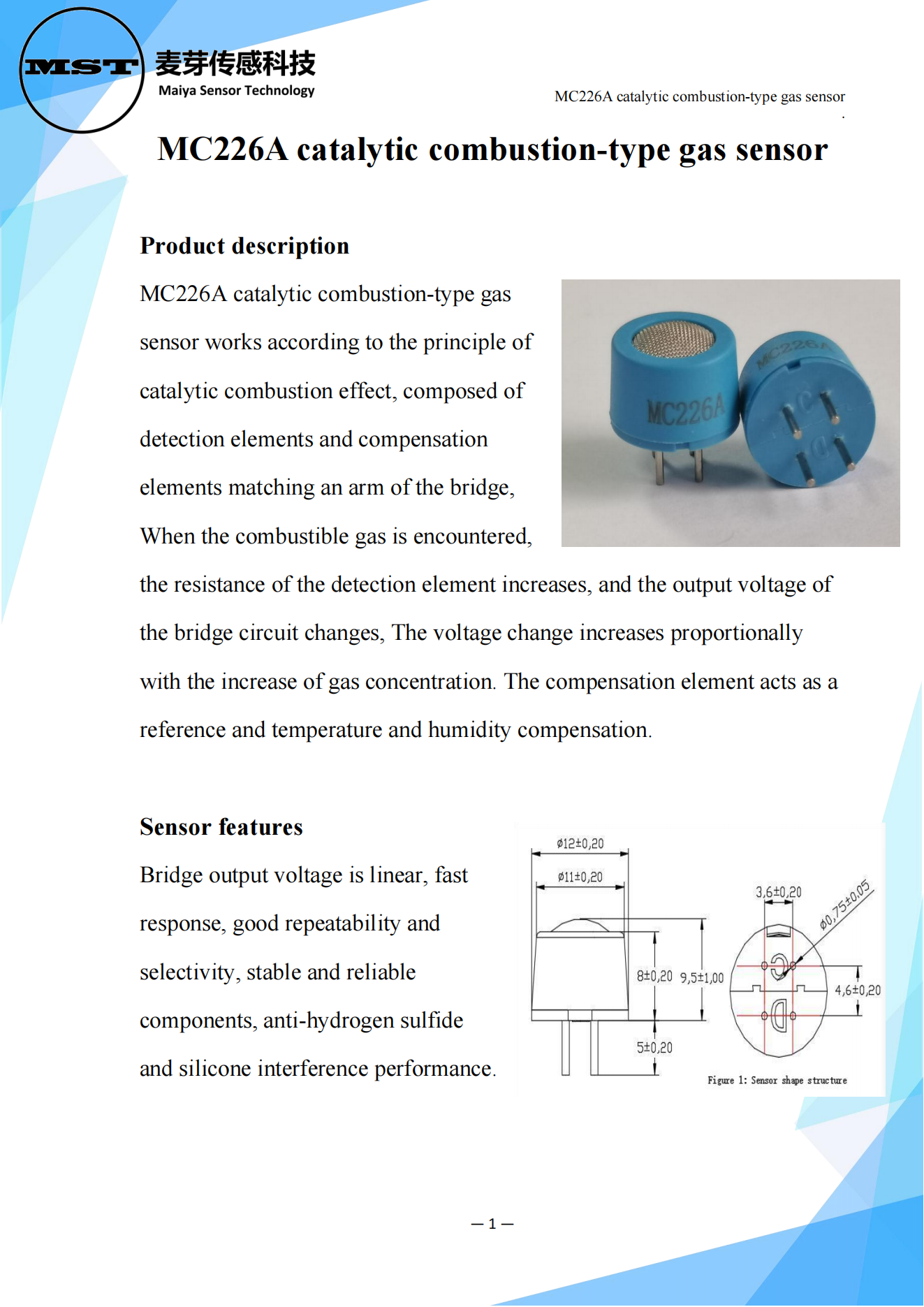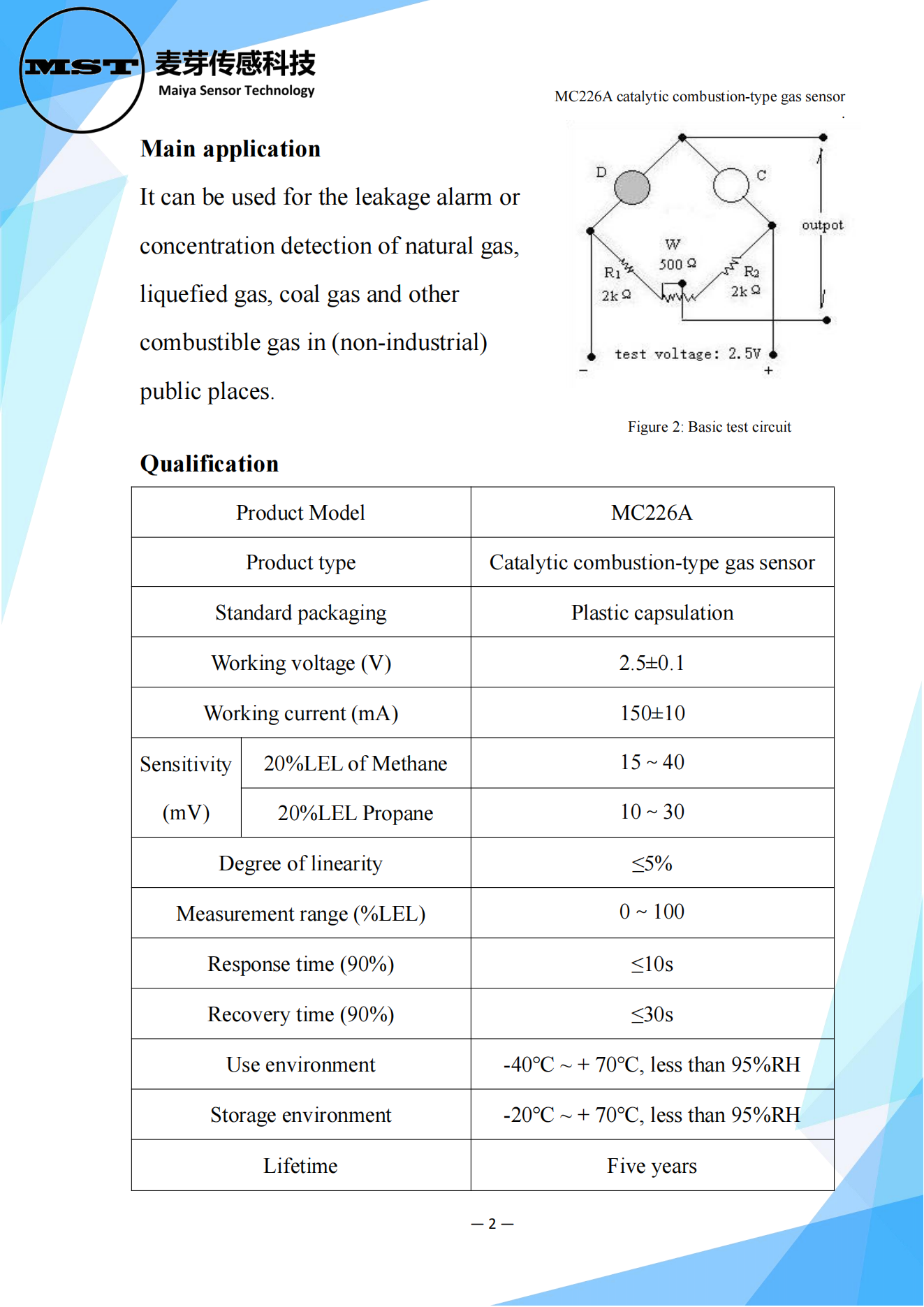 MC226A catalytic combustion-type gas sensor works according to the principle of catalytic combustion effect, composed of detection elements and compensation elements matching an arm of the bridge, When the combustible gas is encountered, the resistance of the detection element increases, and the output voltage of the bridge circuit changes, The voltage change increases proportionally with the increase of gas concentration. The compensation element acts as a reference and temperature and humidity compensation.