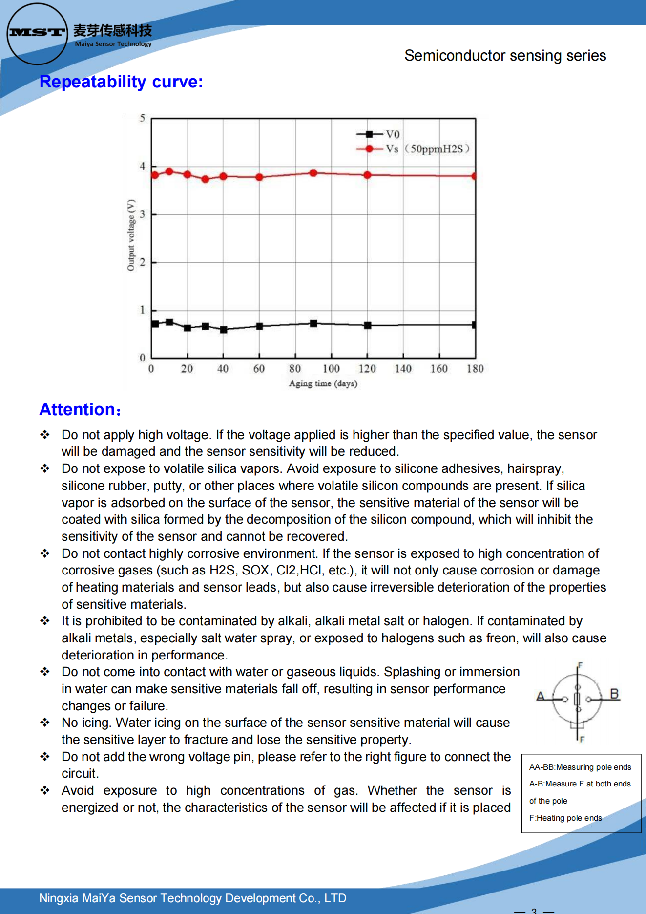 MST133 gas-sensitive material used by the gas sensor is tin dioxide (SnO2), which has a low conductivity in clean air. When the sensor encounters the detected gas, the resistance of the sensor changes, and the conductivity of the sensor increases correspondingly with the increase of the detected gas concentration. According to this characteristic, a simple test circuit can be designed to convert the change of conductivity into a signal output corresponding to the change of gas concentration, so as to realize the detection of gas.