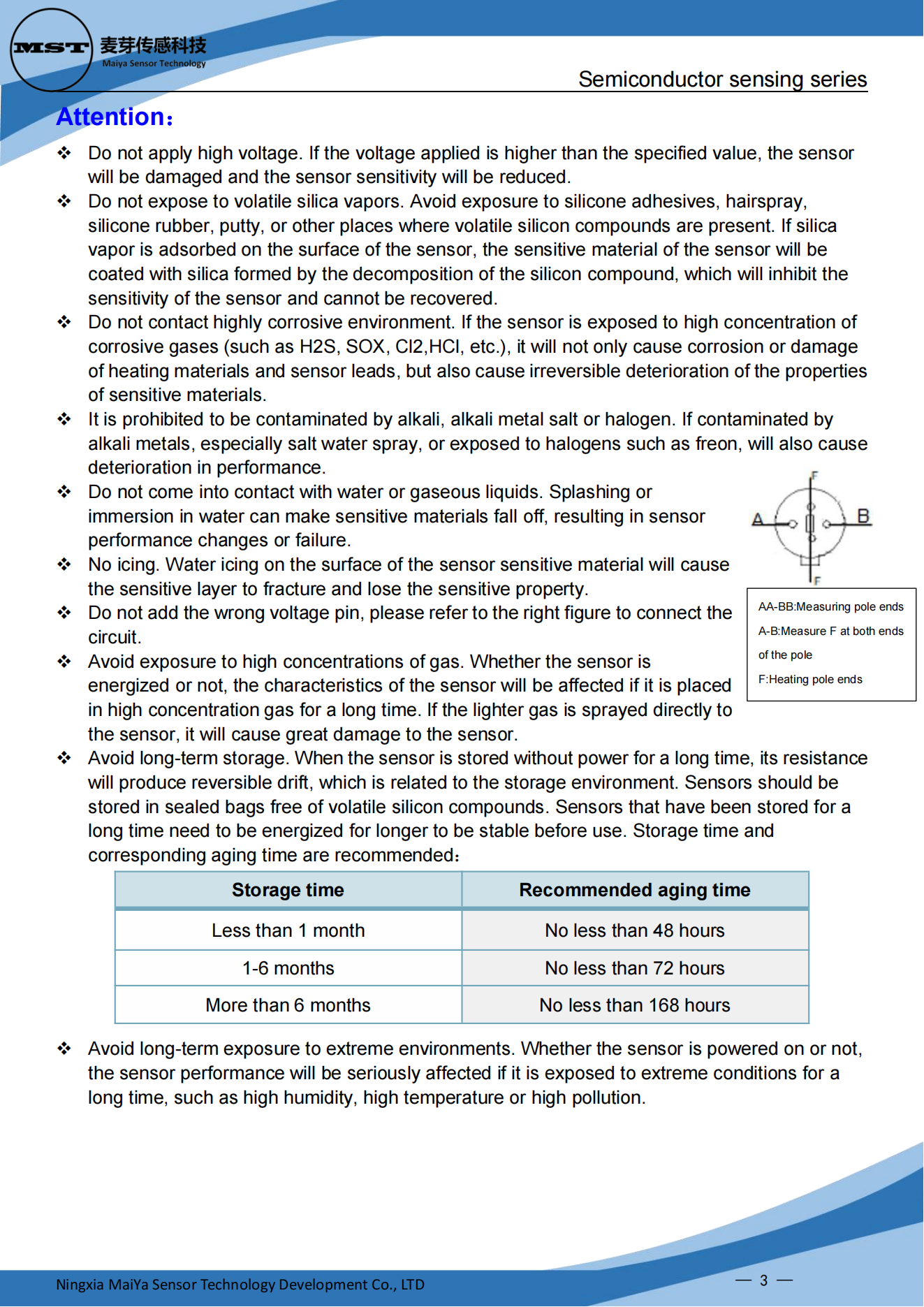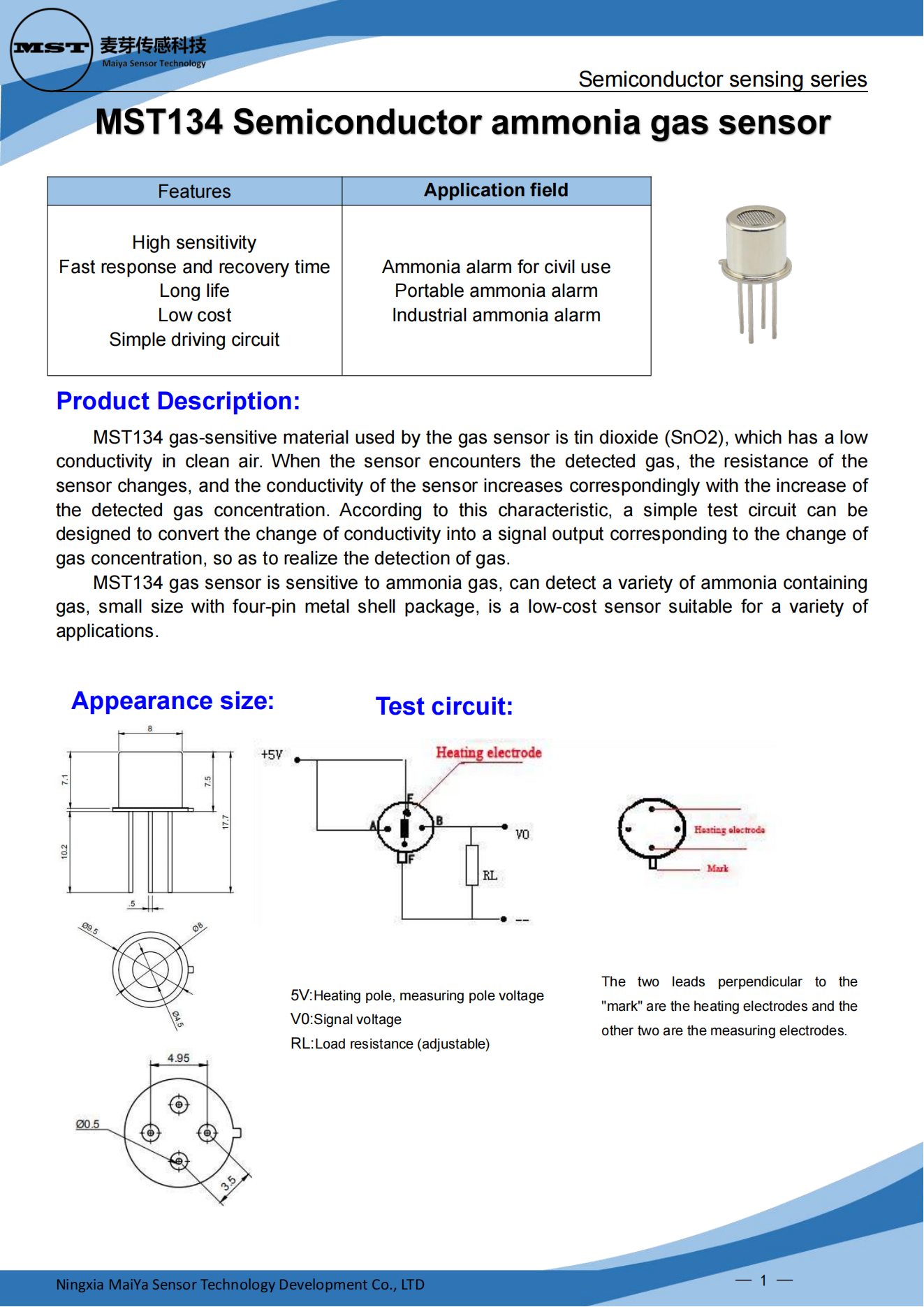 MST134 gas-sensitive material used by the gas sensor is tin dioxide (SnO2), which has a low conductivity in clean air. When the sensor encounters the detected gas, the resistance of the sensor changes, and the conductivity of the sensor increases correspondingly with the increase of the detected gas concentration. According to this characteristic, a simple test circuit can be designed to convert the change of conductivity into a signal output corresponding to the change of gas concentration, so as to realize the detection of gas.