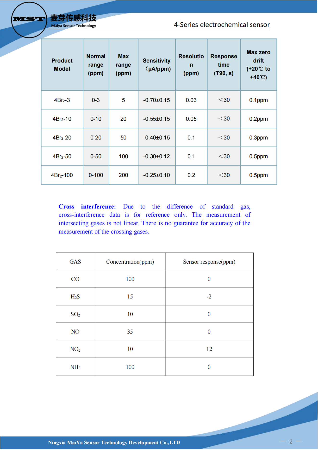 4-Series electrochemical gas sensors are designed for gas leak monitoring and alarm. They are not suitable for long-term exposure to the gas to be measured or long-term on-line continuous detection and analysis instruments.