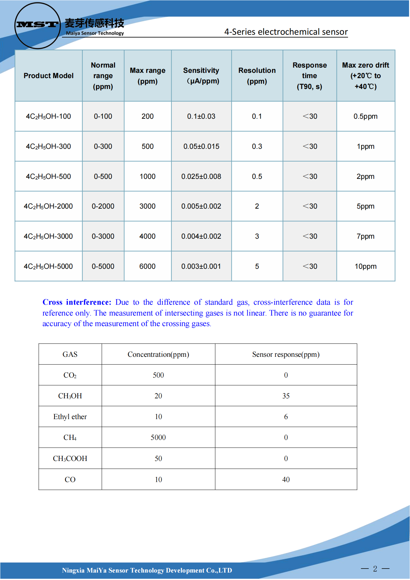 4-Series electrochemical gas sensors are designed for gas leak monitoring and alarm. They are not suitable for long-term exposure to the gas to be measured or long-term on-line continuous detection and analysis instruments.