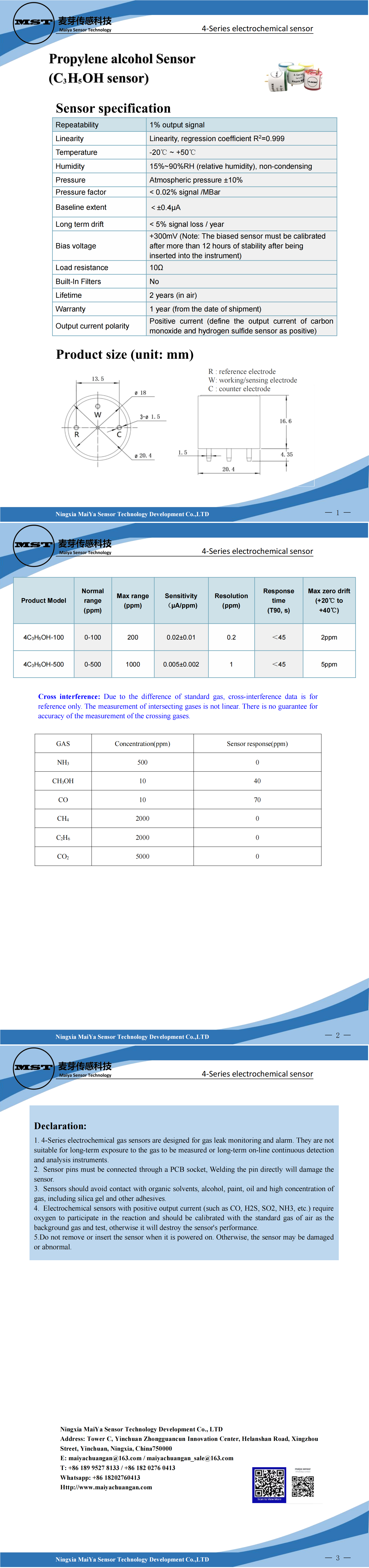 Propylene Alcohol Sensor(C3H5OH sensor)4-Series electrochemical sensor
