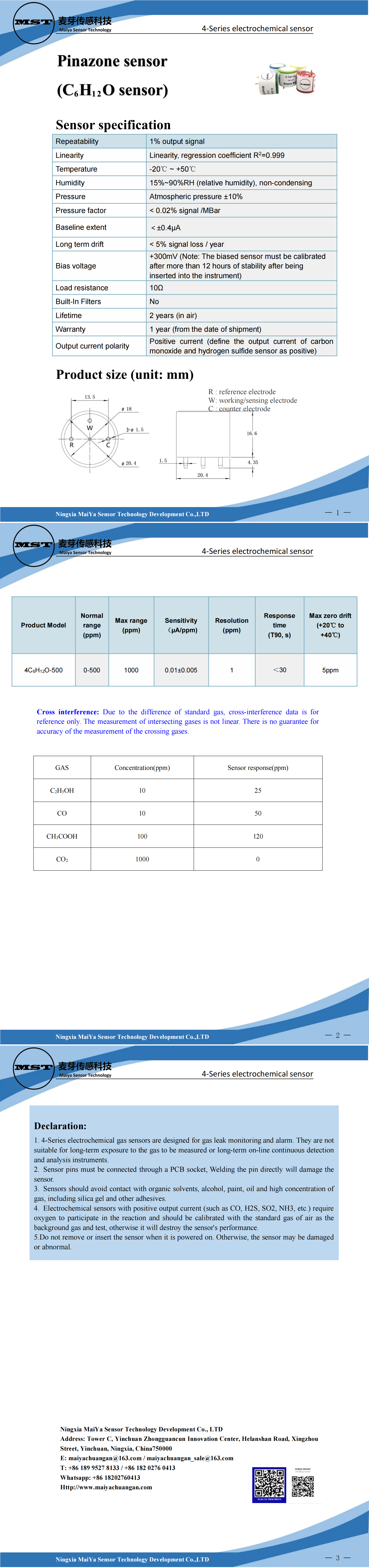 Pinazone sensor (C?H??O sensor)4-Series electrochemical sensor