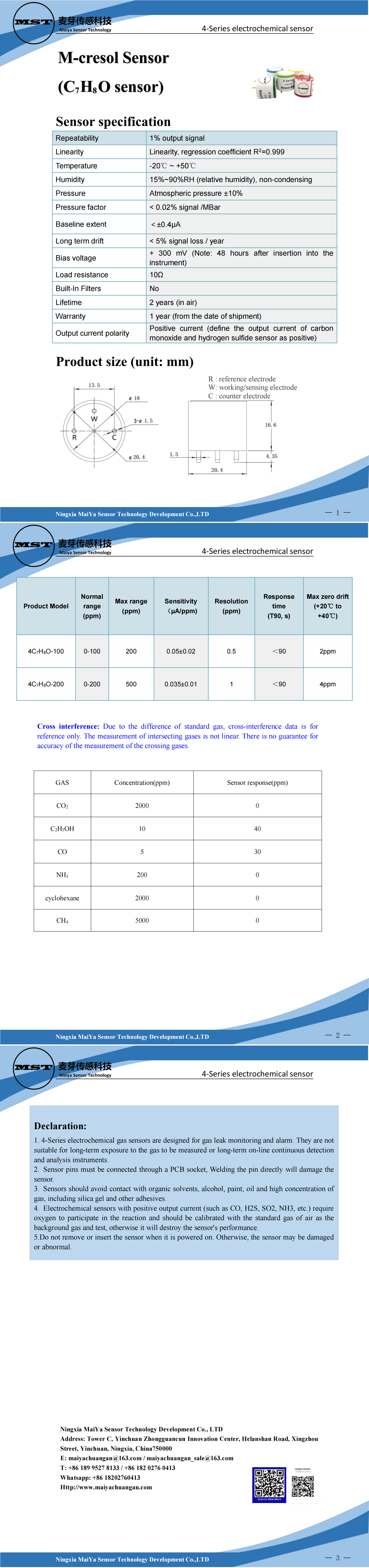 M-cresol Sensor(C?H?O sensor)4-Series electrochemical sensor