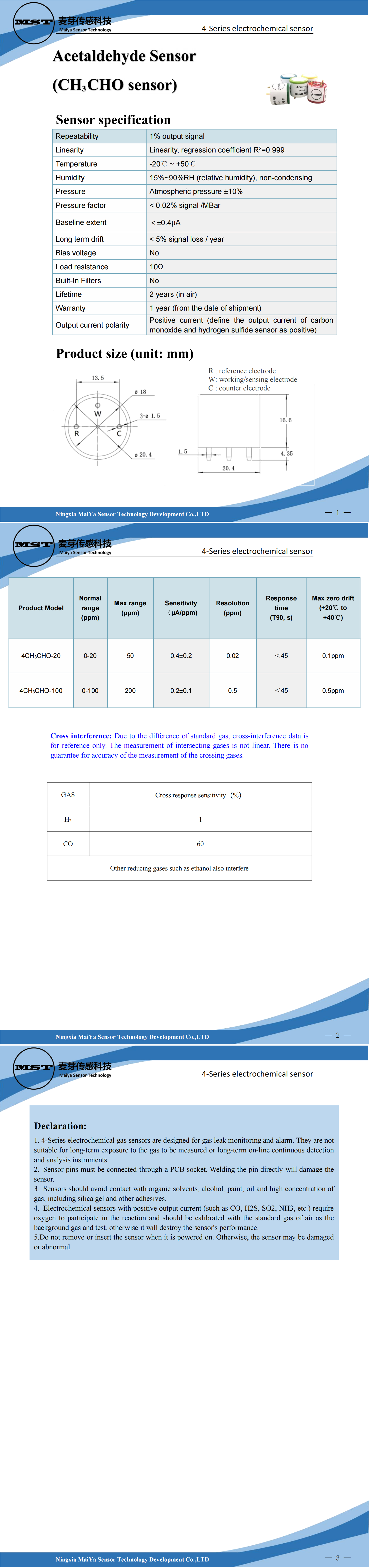 Acetaldehyde Sensor (CH?CHO sensor)4-Series electrochemical sensor