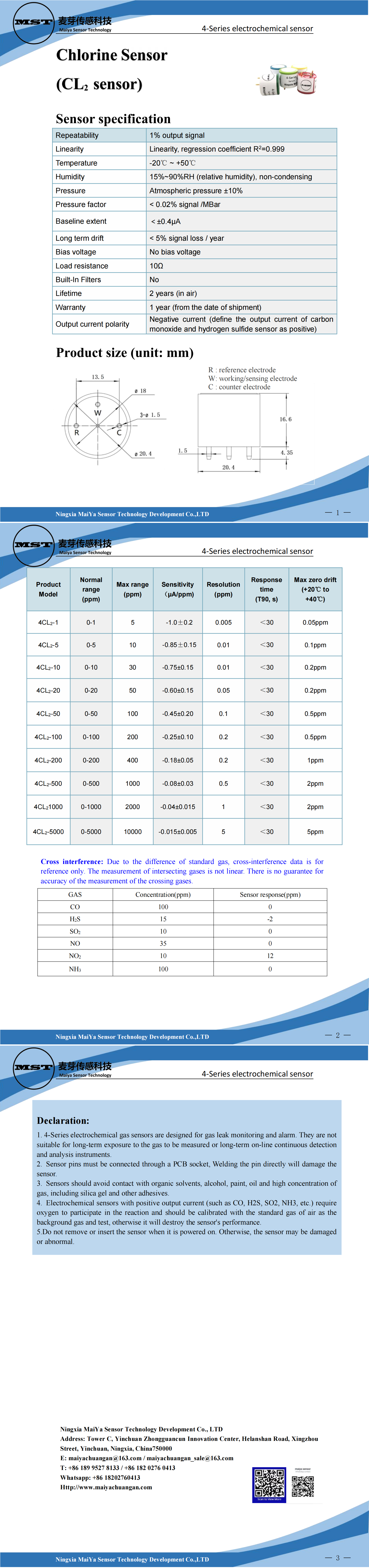 Chlorine Sensor (CL?sensor)4-Series electrochemical sensor