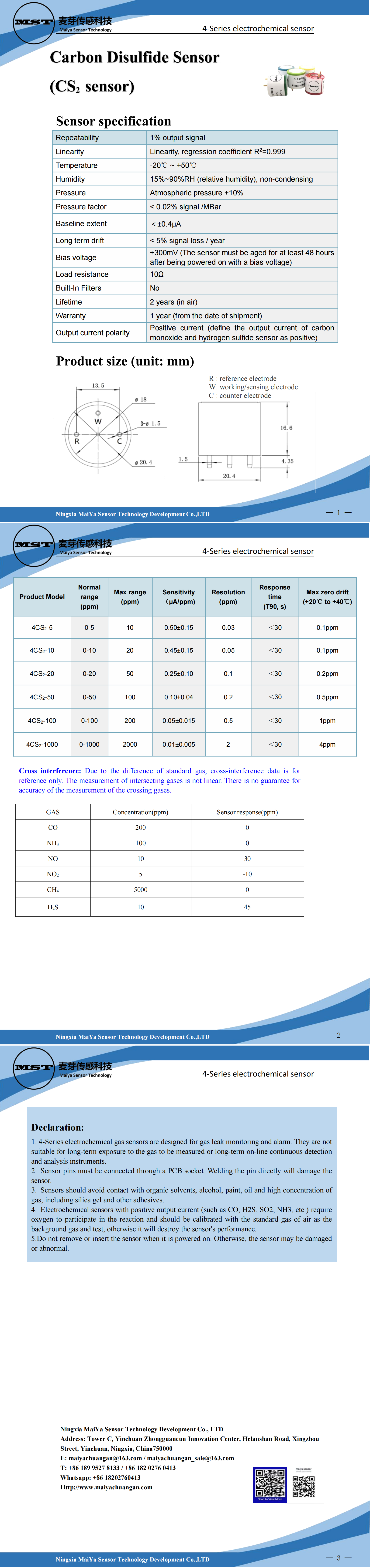 Carbon Disulfide Sensor(CS? sensor)4-Series electrochemical sensor