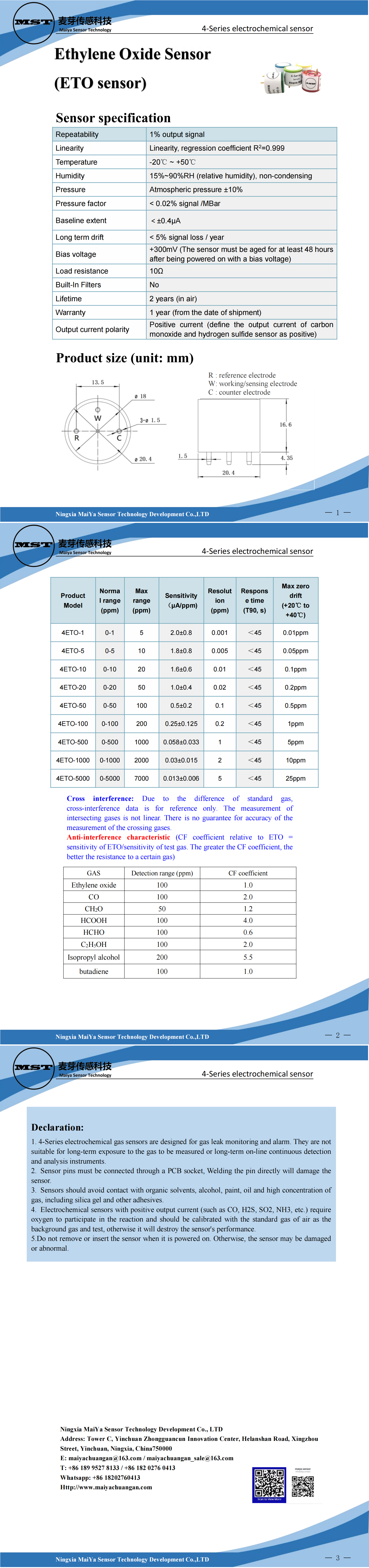 Ethylene Oxide Sensor(ETO sensor)4-Series electrochemical sensor