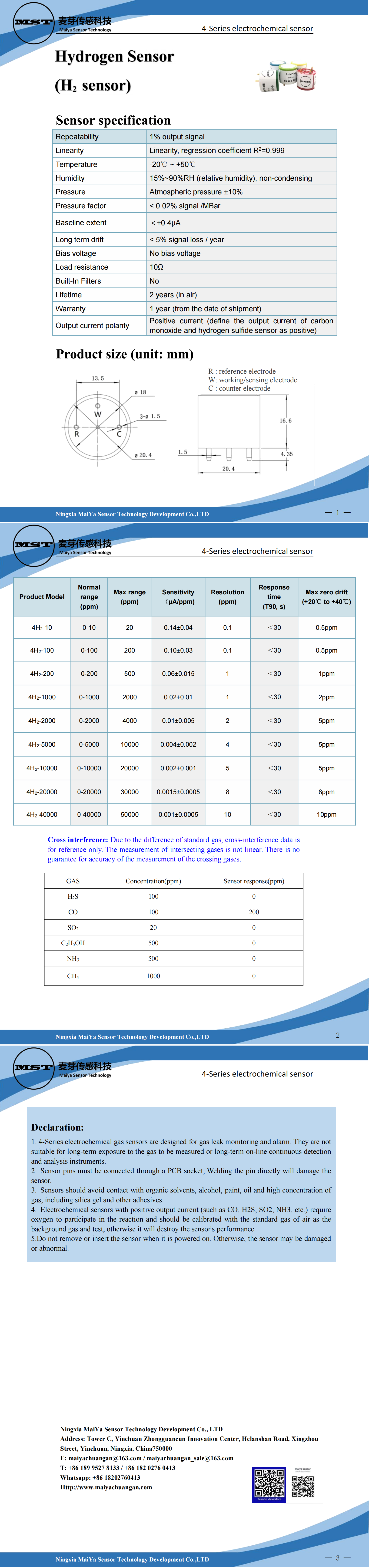Hydrogen Sensor (H? sensor)4-Series electrochemical sensor