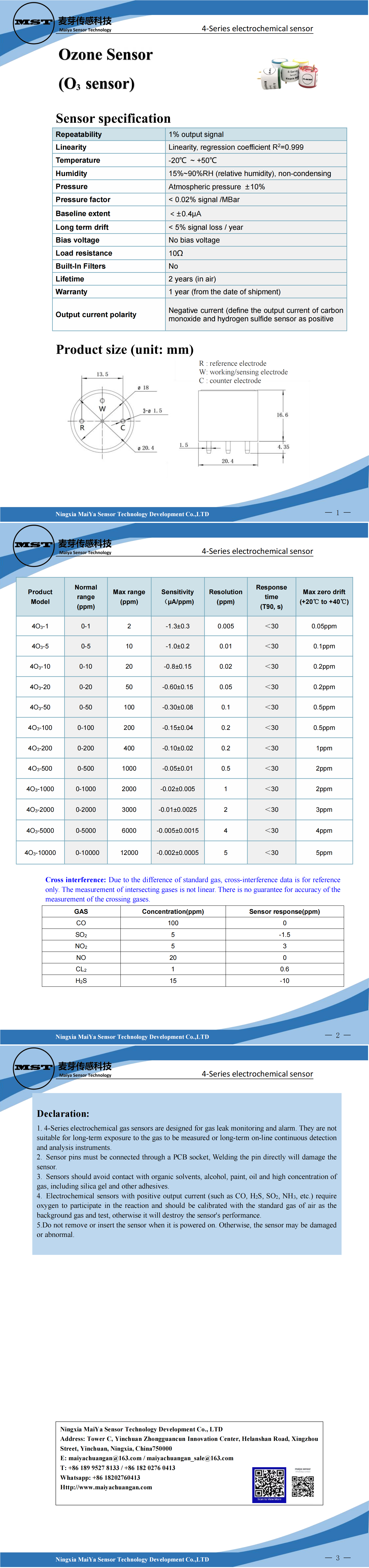 4-Series electrochemical gas sensors are designed for gas leak monitoring and alarm. They are not suitable for long-term exposure to the gas to be measured or long-term on-line continuous detection and analysis instruments.