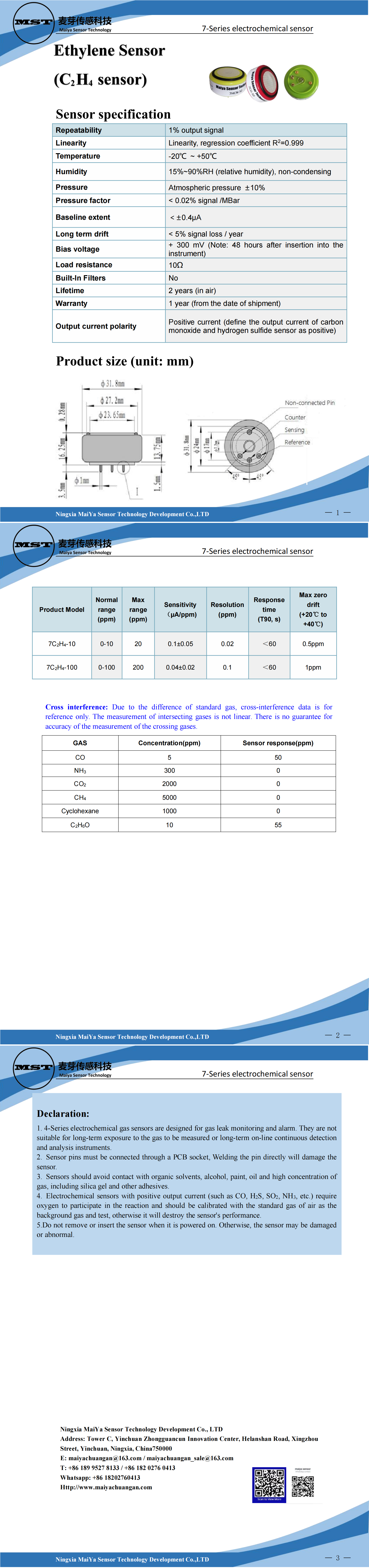 Ethylene Sensor(C?H? sensor)7-Series electrochemical sensor