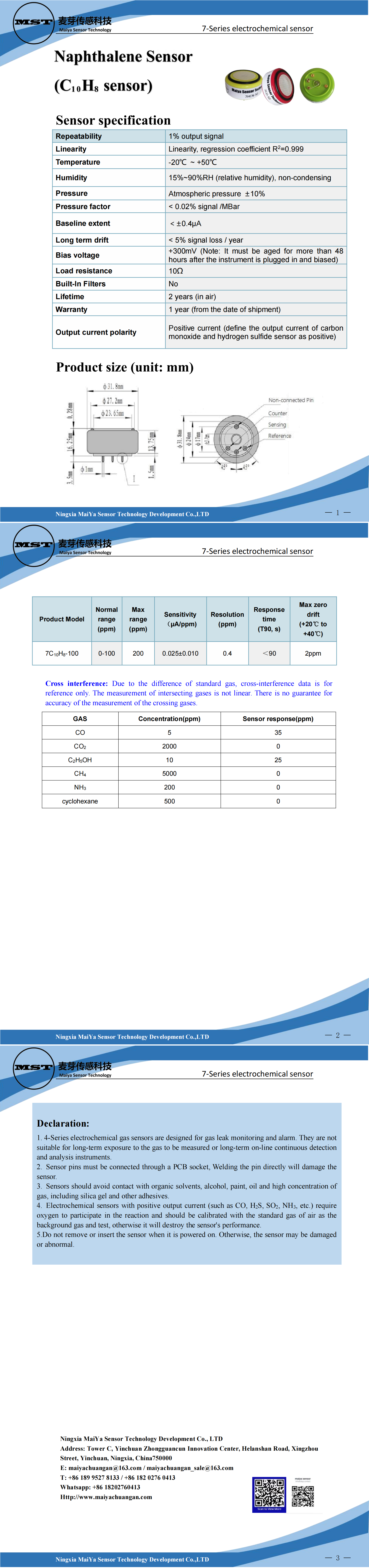 Naphthalene Sensor(C10H8 sensor)7-Series electrochemical sensor