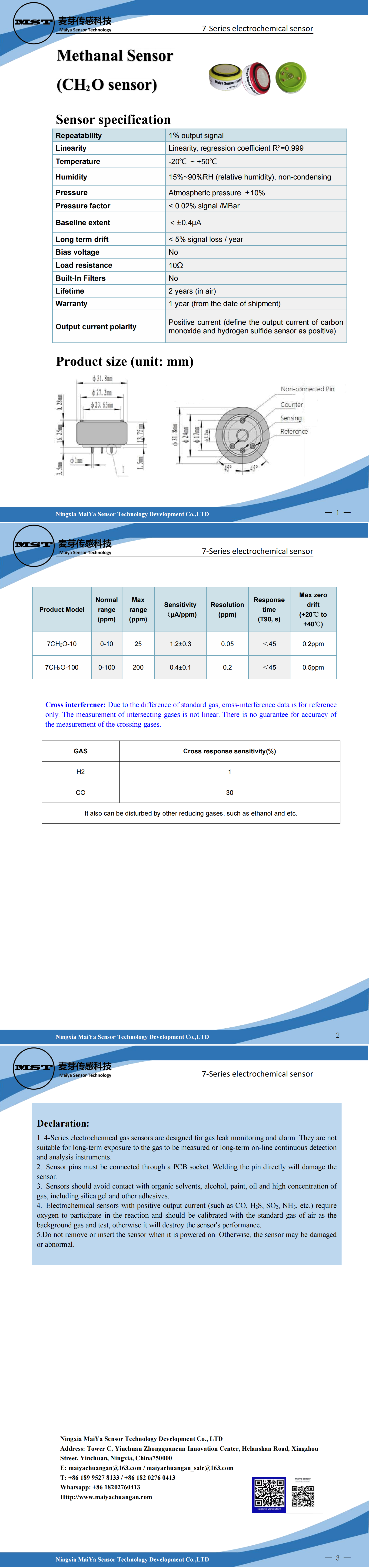 Methanal Sensor(CH?O sensor)7-Series electrochemical sensor