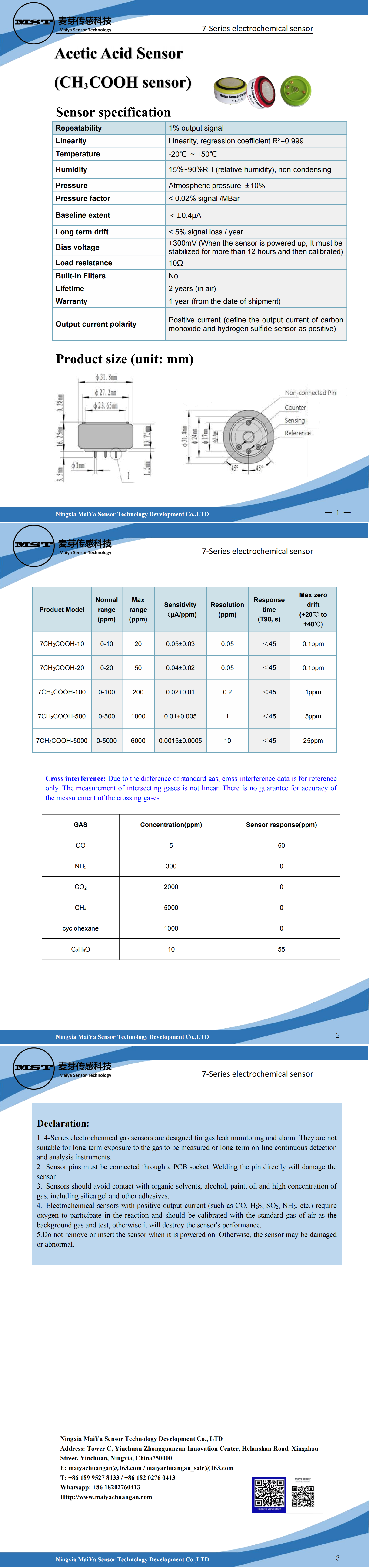 Acetic Acid Sensor(CH?COOH sensor)7-Series electrochemical sensor