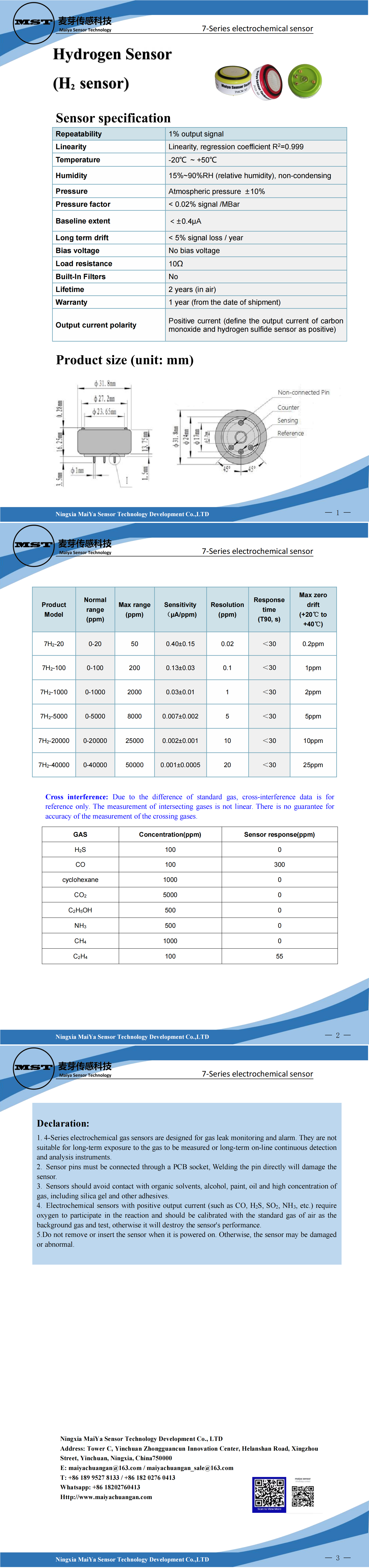 Hydrogen Sensor(H? sensor)7-Series electrochemical sensor