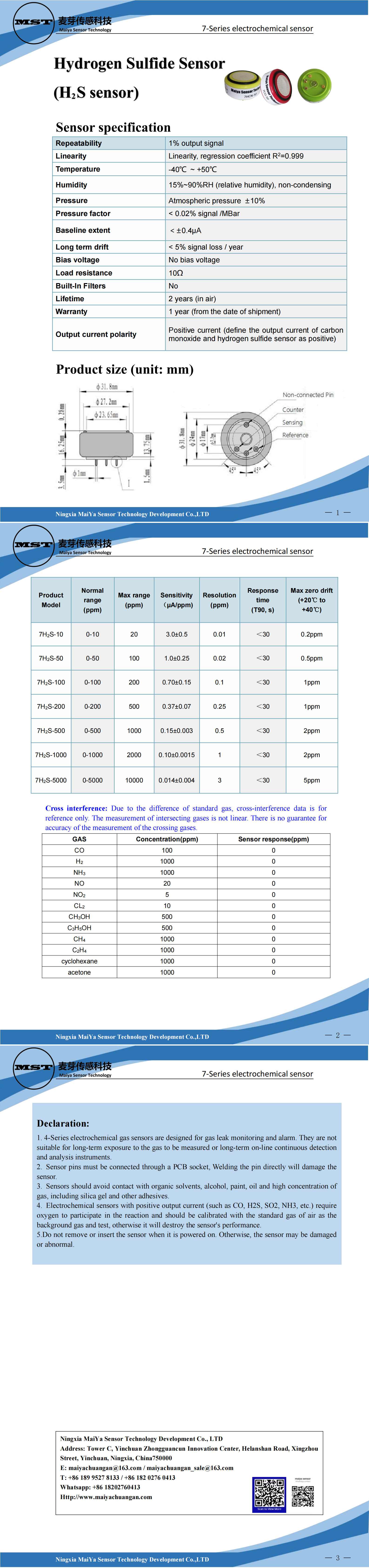Hydrogen Sulfide Sensor(H?S sensor)7-Series electrochemical sensor