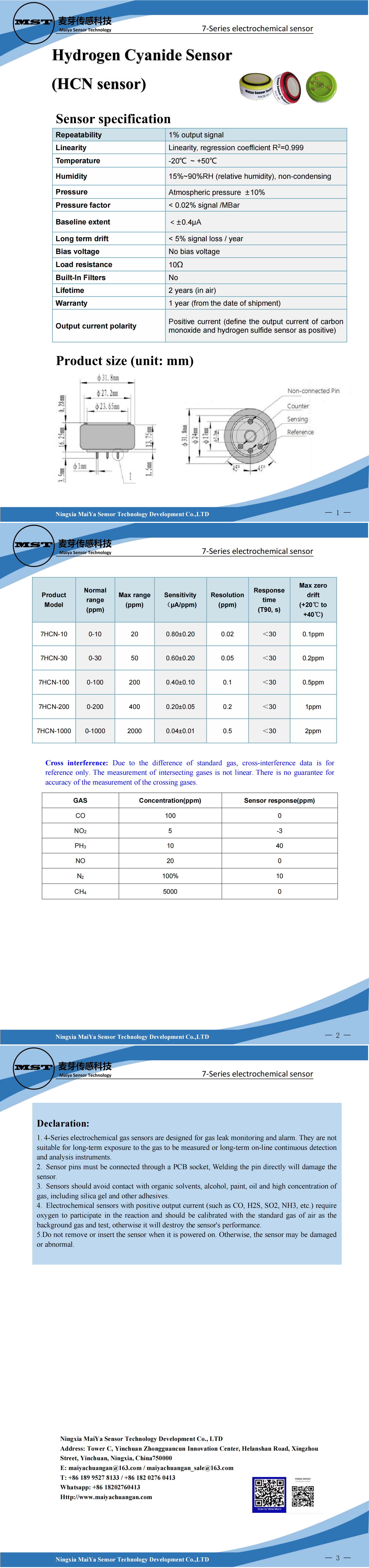 Cyanide SensorHydrogen(HCN sensor)7-Series electrochemical sensor