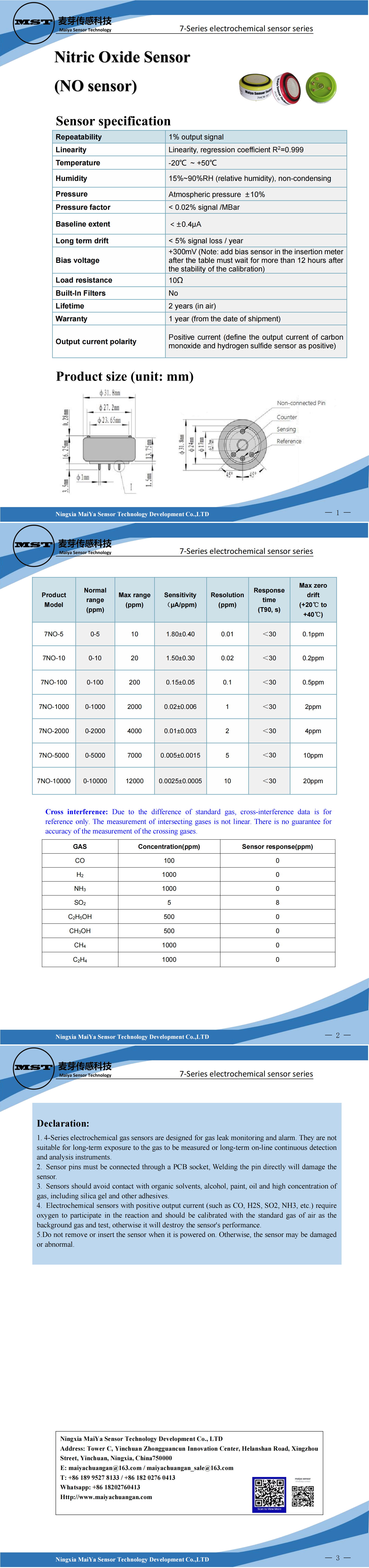Nitric Oxide Sensor(NO sensor)7-Series electrochemical sensor