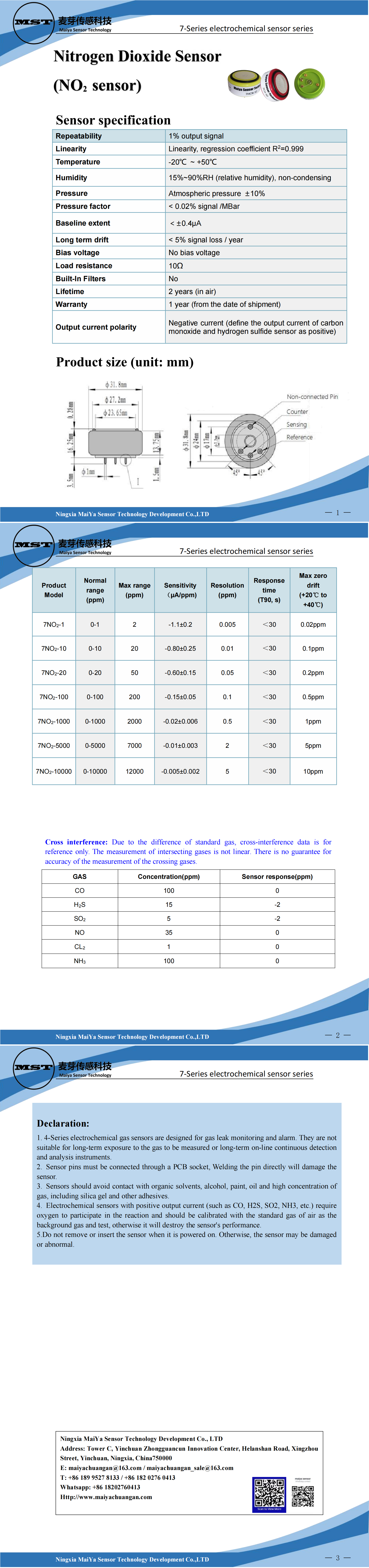 Nitrogen Dioxide Sensor(NO? sensor)7-Series electrochemical sensor