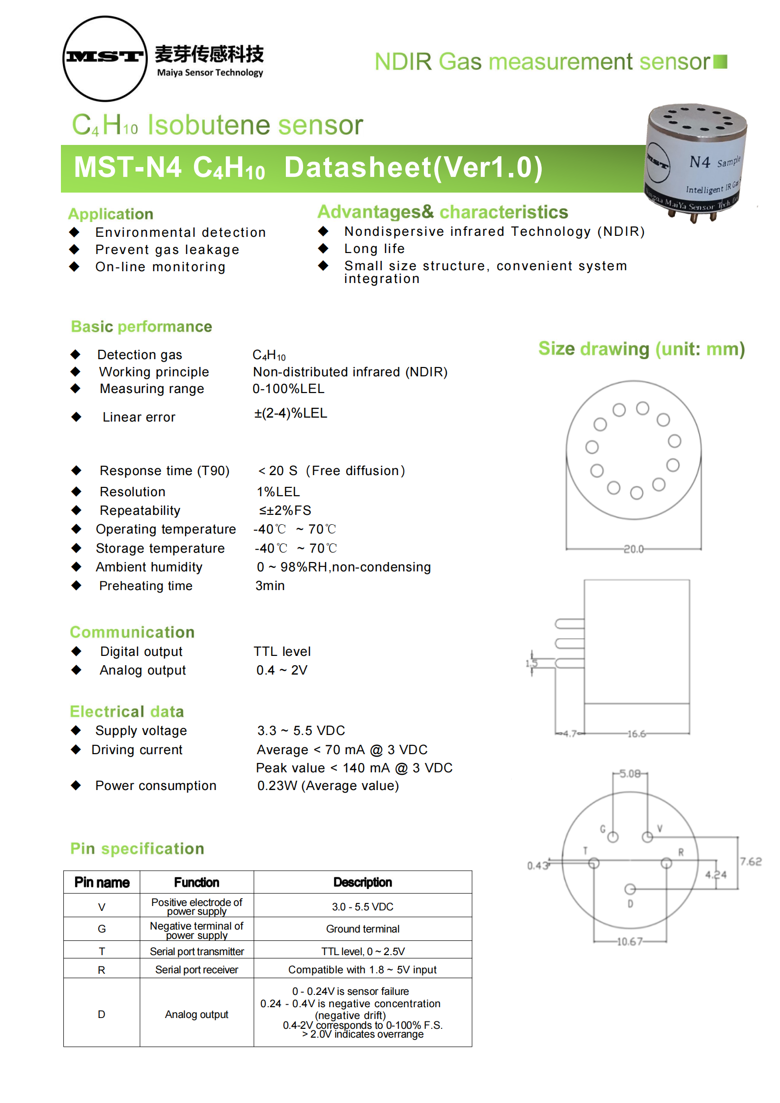 MST-N4 C4H10 lsobutene Sensor NDIR Gas measurement sensor