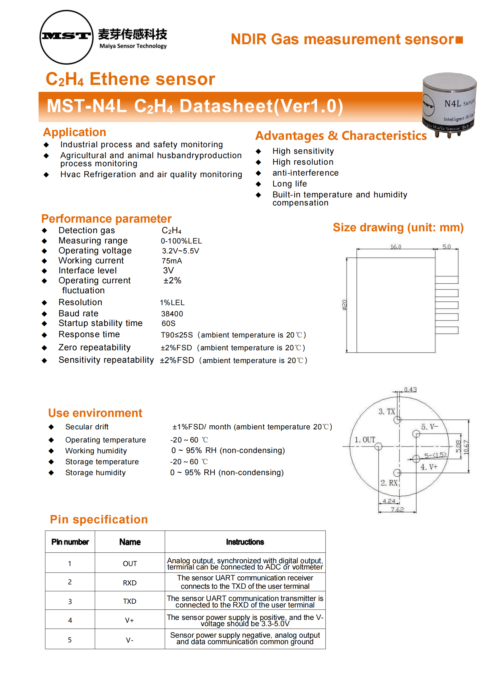 Advantages & characteristics High sensitivity High resolution anti-interference Long life Built-in temperature and humidity compensation
