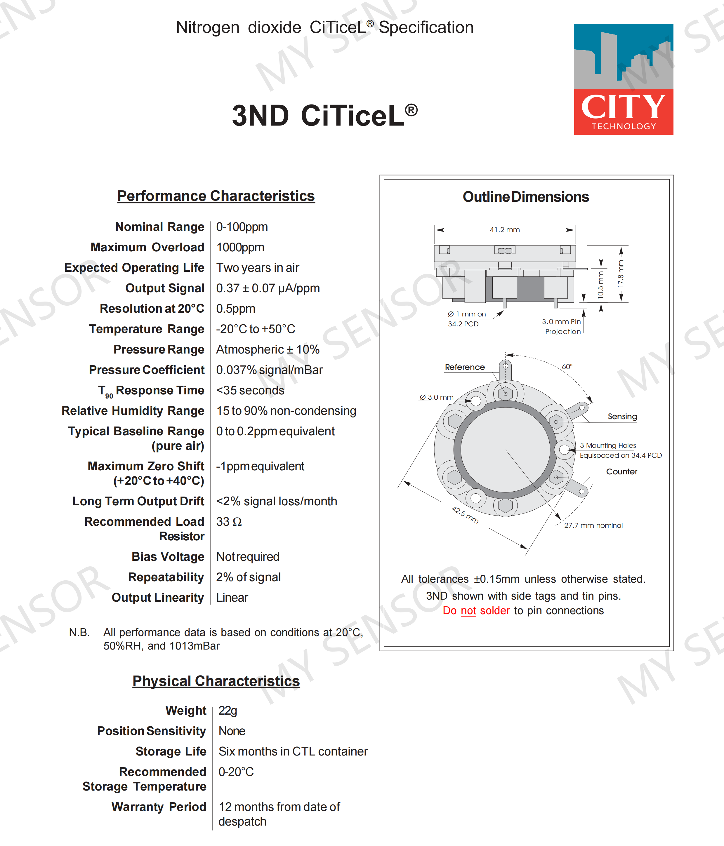 Nominal Range 0-100ppm Maximum Overload 1000ppm