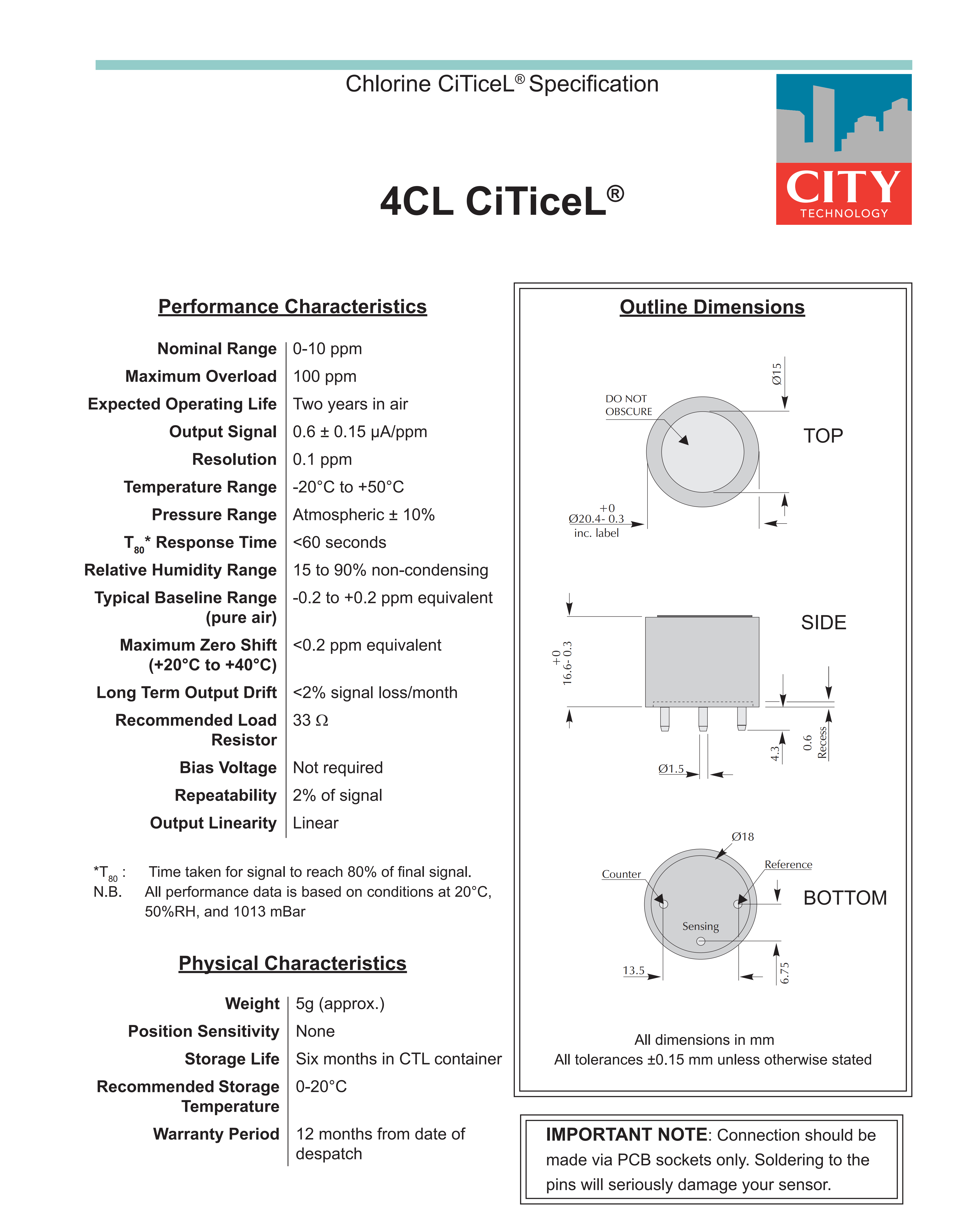 Nominal Range 0-10 ppm Maximum Overload 100 ppm