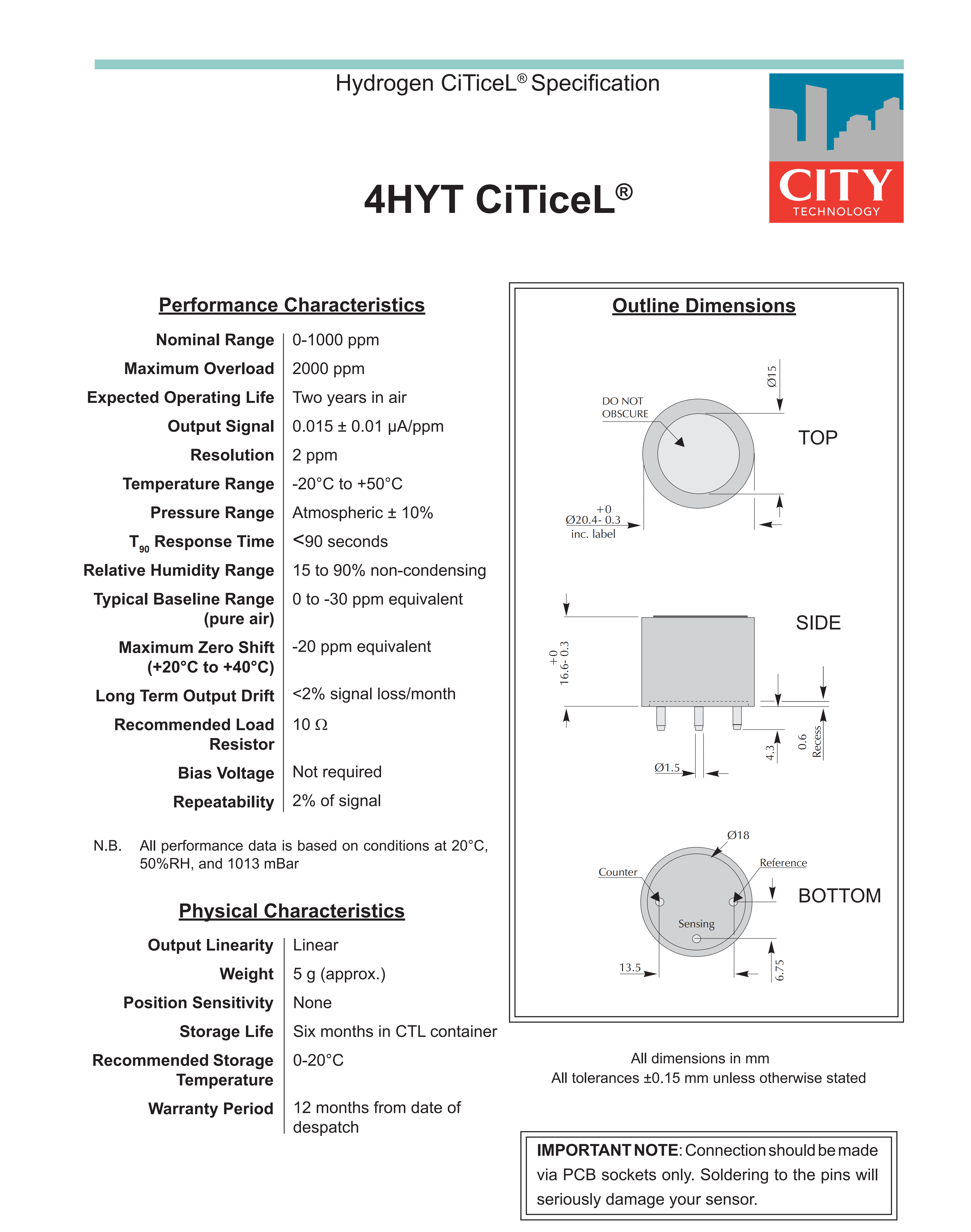 Nominal Range 0-1000 ppm Maximum Overload 2000 ppm