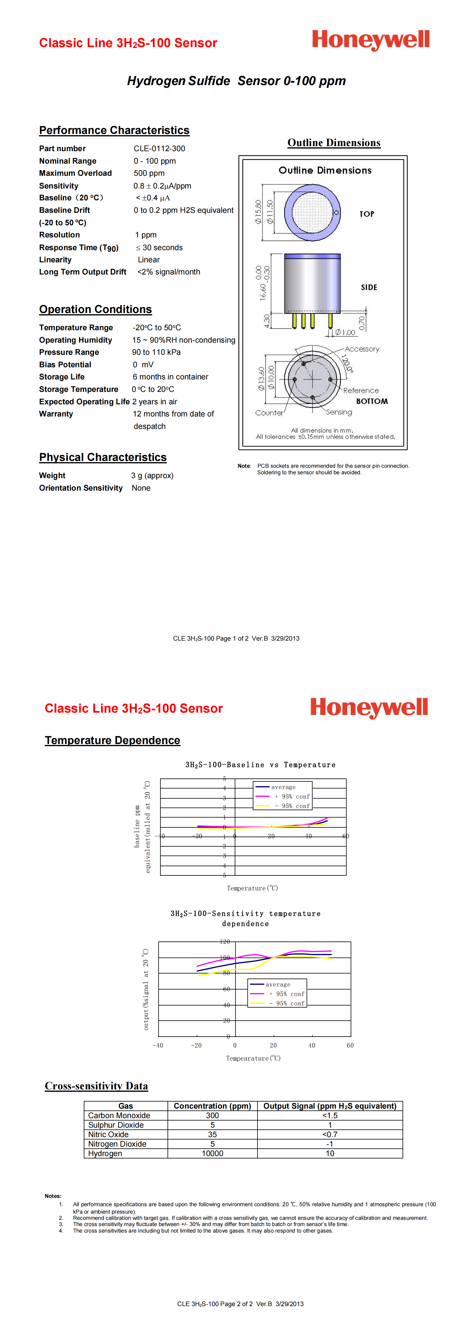 Nominal Range 0 - 100 ppm Maximum Overload 500 ppm