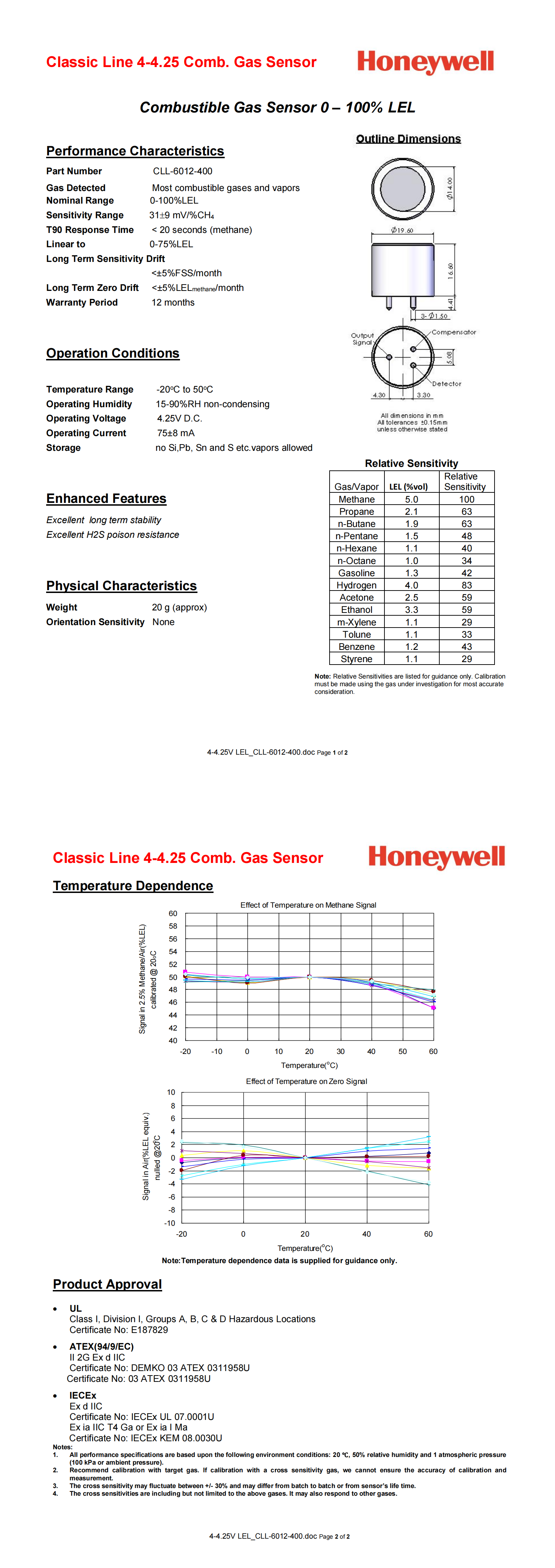 Gas Detected Most combustible gases and vapors Nominal Range 0-100%LEL