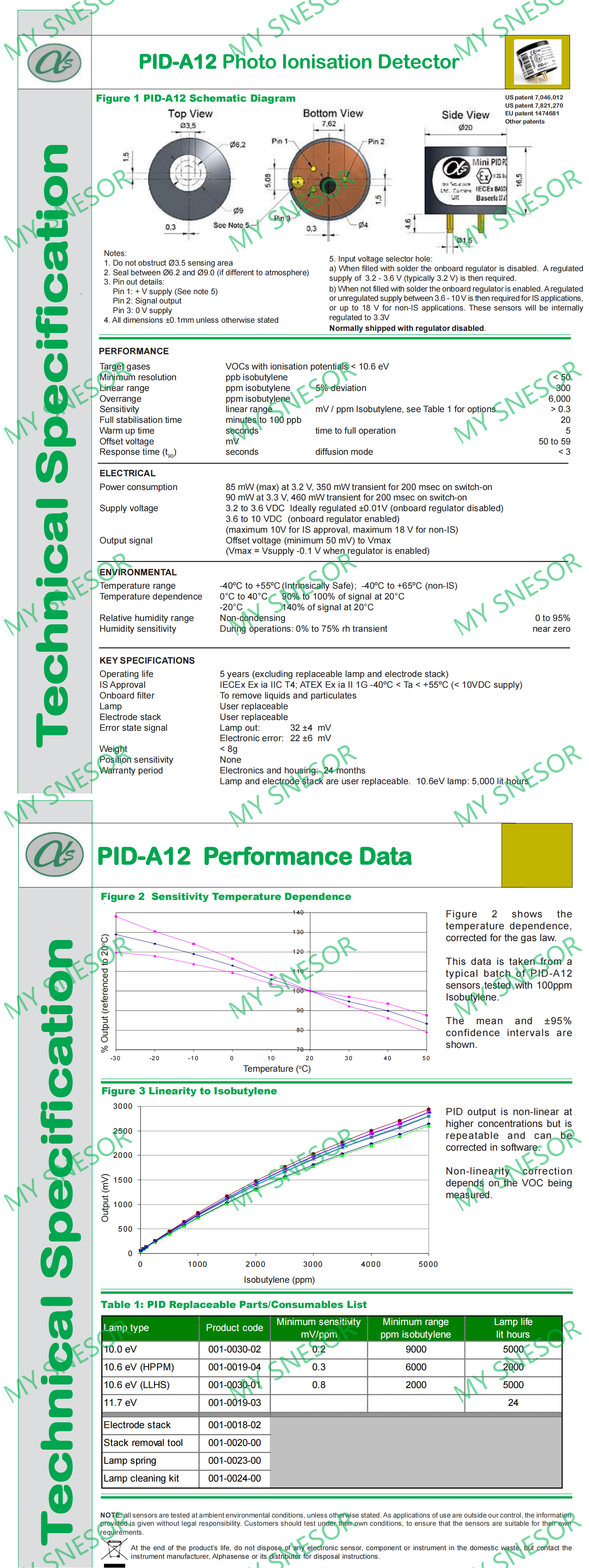 The Alphasense PID sensor is offered in two models, A12 and AH2.