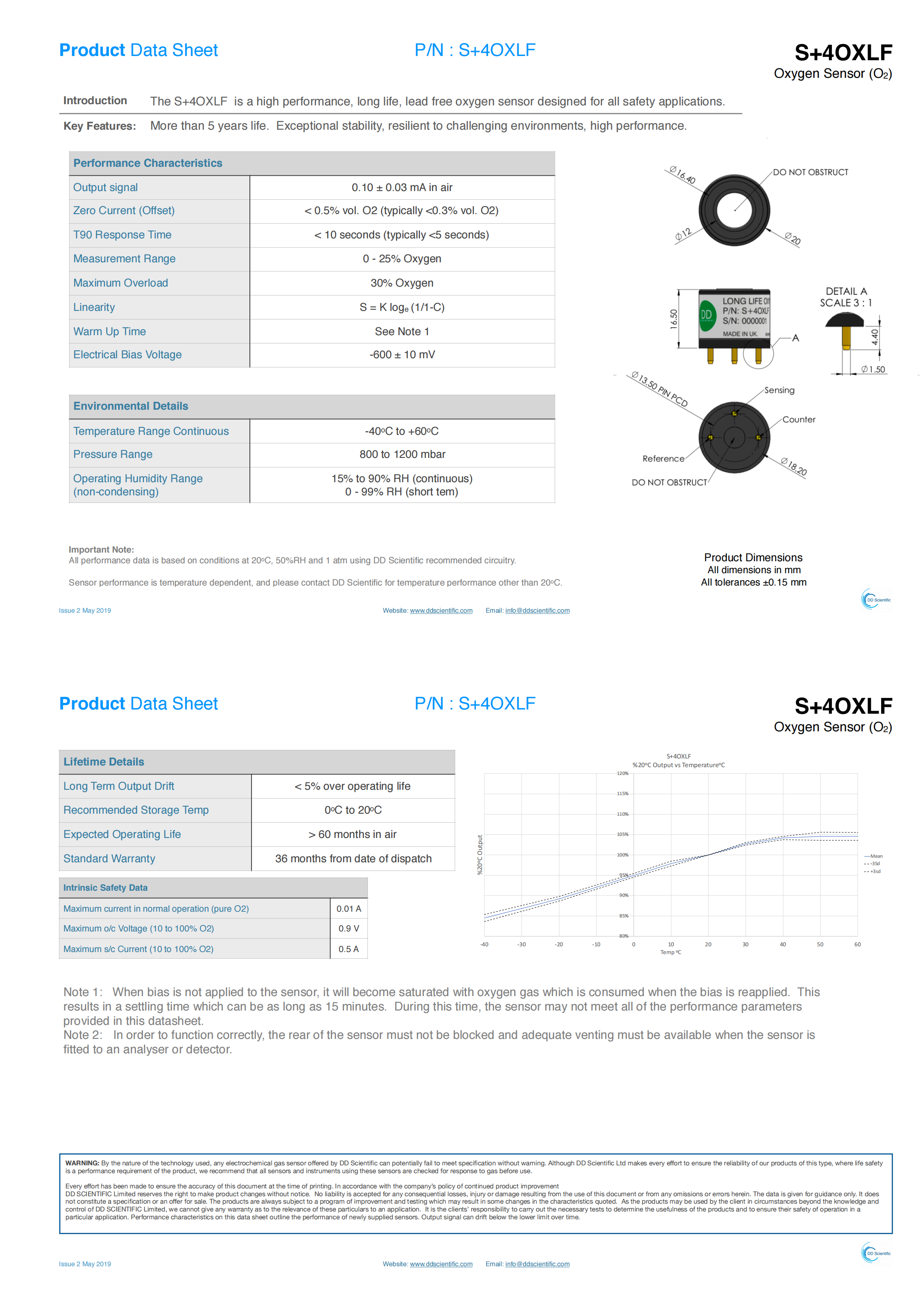 The S+4OXLF is a high performance, long life, lead free oxygen sensor designed for all safety applications. More than 5 years life. Exceptional stability, resilient to challenging environments, high performance.