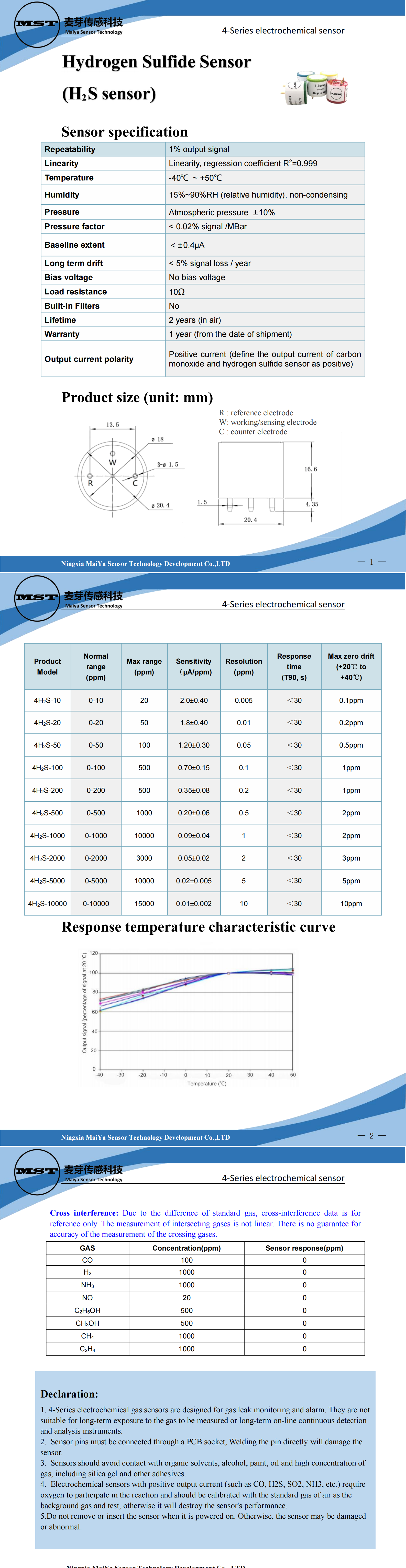 MST Hydrogen Sulfide Sensor (H2S sensor) 4-Series electrochemical sensor