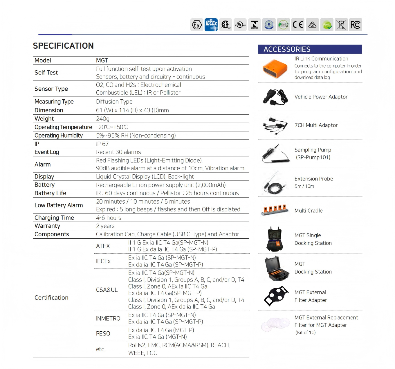 SP-MGT is a united gas detector measuring four(4) major gases, which cause most of the industrial accidents, to protect workers from the disasters caused by the Oxygen deficiency, Toxic gas poisoning and gas explosion.
