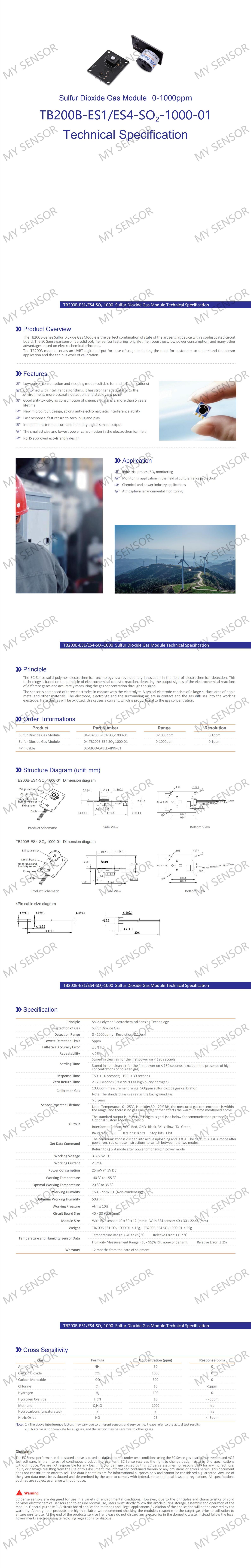 Sulfur Dioxide Gas Module 0-1000ppm TB200B-ES1/ES4-SO2-1000-01